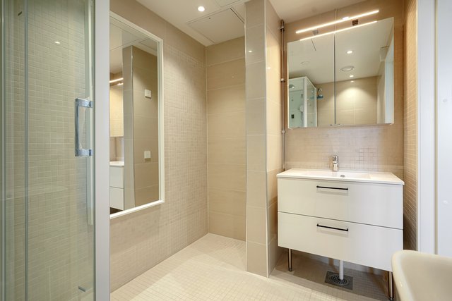 Osa märkätilojen lattioista laatoitettu uudelleen ja osa pintakäsitelty uudelleen, silikonisaumat
