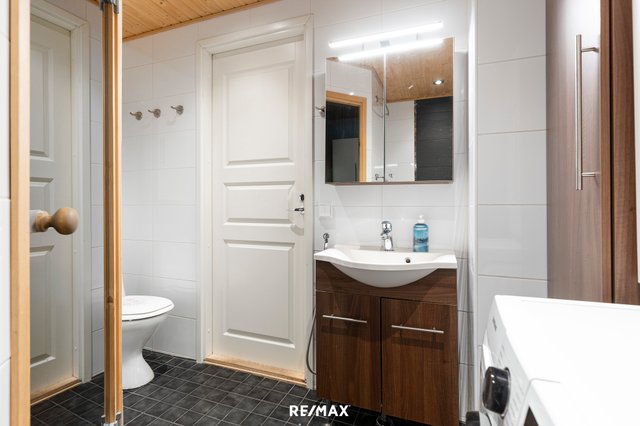 Kylpyhuone on remontoitu ja siellä on runsaasti säilytystilaa. Myös saunan pintoja on osin päivitetty. Ilmojen viiletessä mikä onkaan mukavampaa kuin oma sauna?