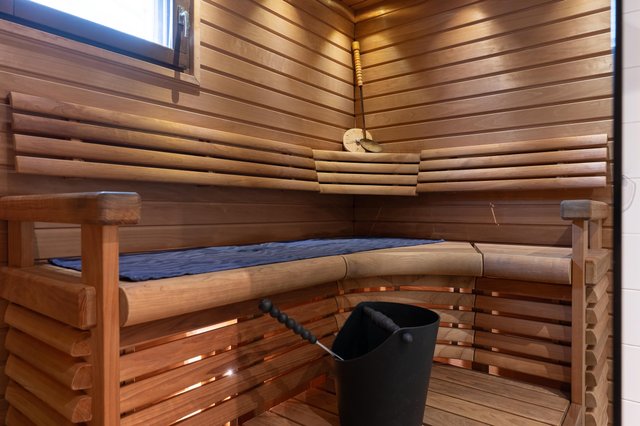 - Sauna (Tähtisaunat) ja kylpyhuoneremontti 2018. Saunan ja kylpyhuoneen välillä lasiseinä. Saunassa kaarevat muotolauteet. Harvian pilarikiuas. Saunassa on ikkuna.
