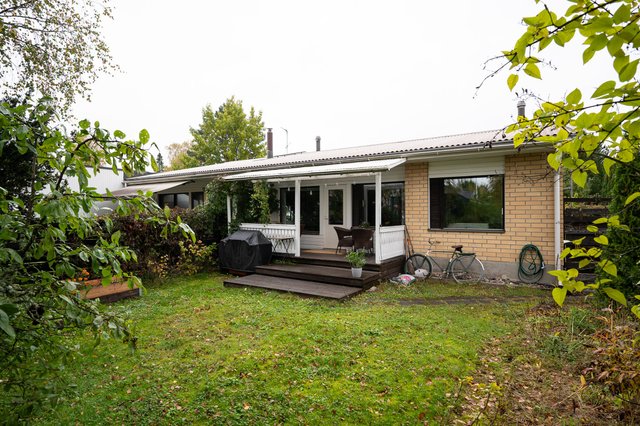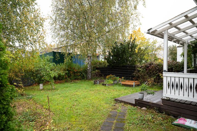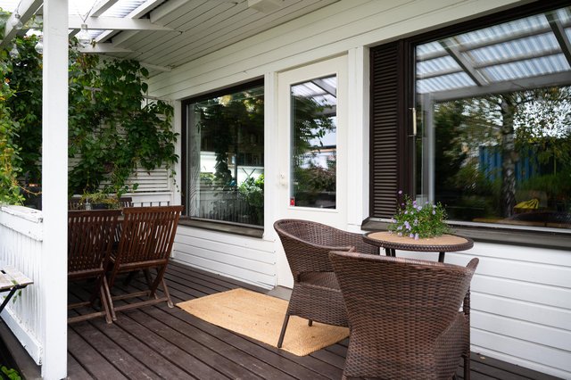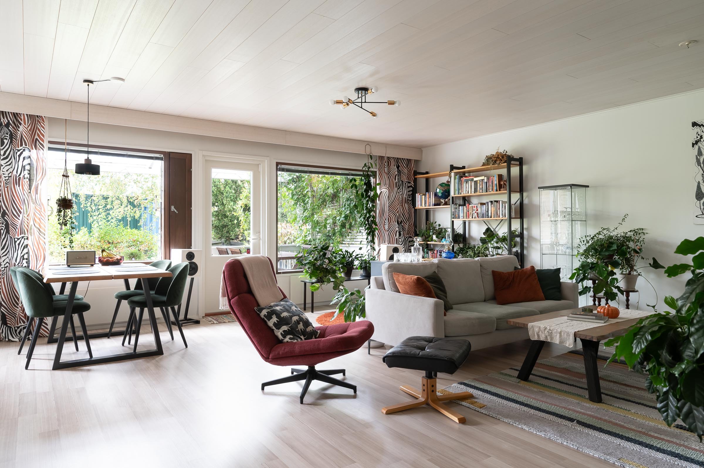 95 m²:n päätyasunto hurmaa valolla, avaruudella ja suojaisalla etelä–länsisuuntaisella pihallaan.