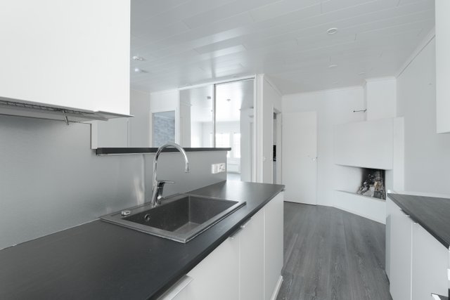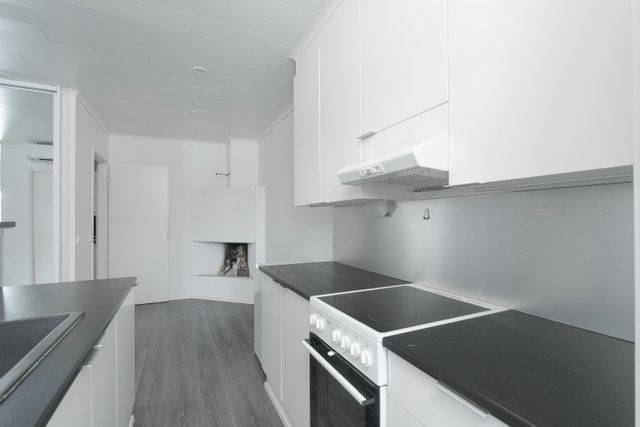 - Keittiö uusittu n 2019, samalla väliseinä poistettu. Jää-viileäkaappi, erillinen pakastin, induktioliesi, liesituuletin ja astianpesukone. Lattia laminaattia ja seinät maalattu. Työtasot laminaattia.