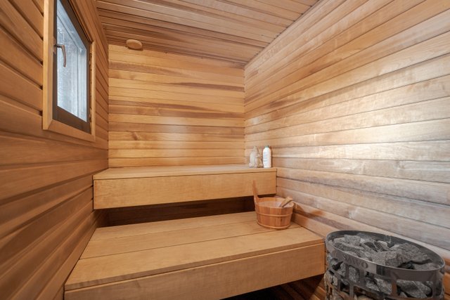 - Uusittu 2016, Sawo-sähkökiuas, lattia lattaa ja seinät paneelia.