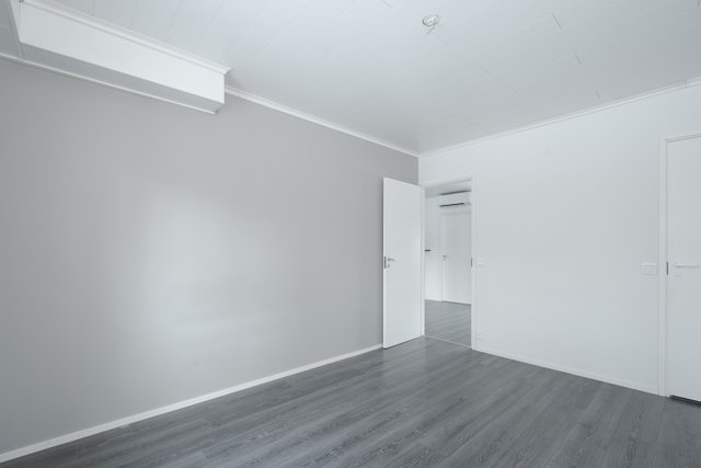 Makuuhuoneessa on laminaattilattiat ja maalatut seinät, jotka luovat rauhallisen tunnelman. Pesuhuone ja sauna on remontoitu vuonna 2016, ja saunassa on laadukas Sawo-sähkökiuas. Vaikka pesuhuoneen lattialämmitys onkin rikki, taloyhtiö on sitoutunut korjaamaan sen.