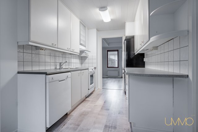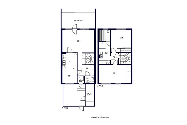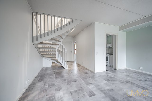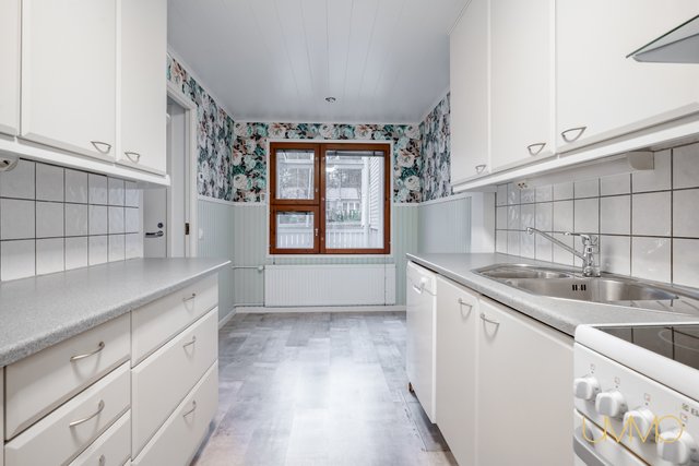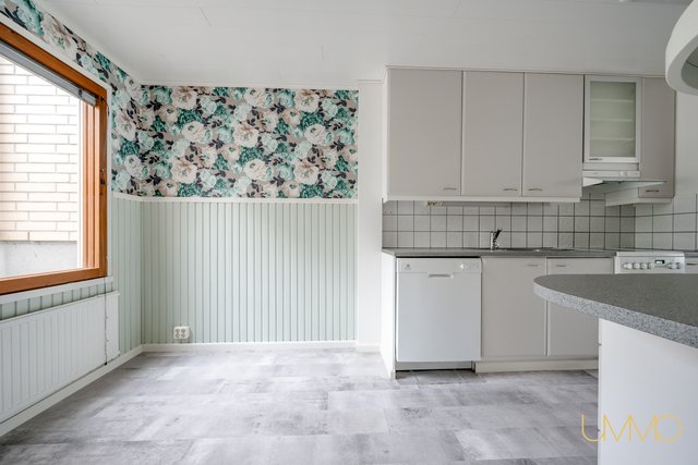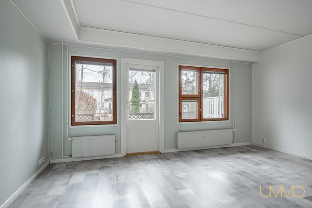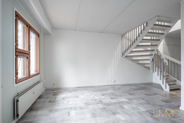 Hyvällä pohjaratkaisulla varustettu koti kahdessa kerroksessa. Olohuone on erittäin tilava ja sieltä on kulku takapihan terassille. Takapihalle paistaa aurinko koko päivän, iltaan saakka. Keittiö on käytännöllinen ja nykyaikaisin kodinkonein varusteltu, joten arjen ruokailuhetket sujuvat vaivattomasti. Samasta kerroksesta löytyy myös erillinen wc.