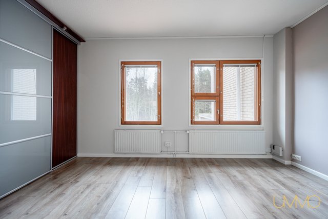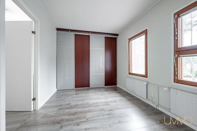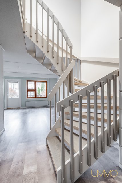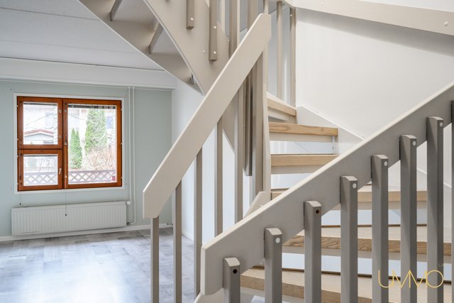 - Seinäpinnat ja laminaatti 2023. Makuuhuoneet sijaitsevat yläkerrassa.