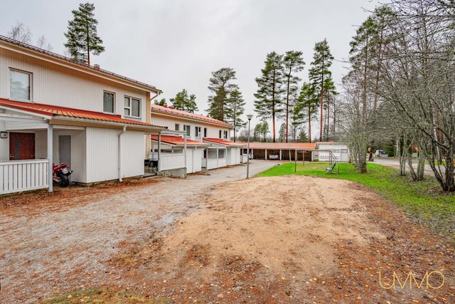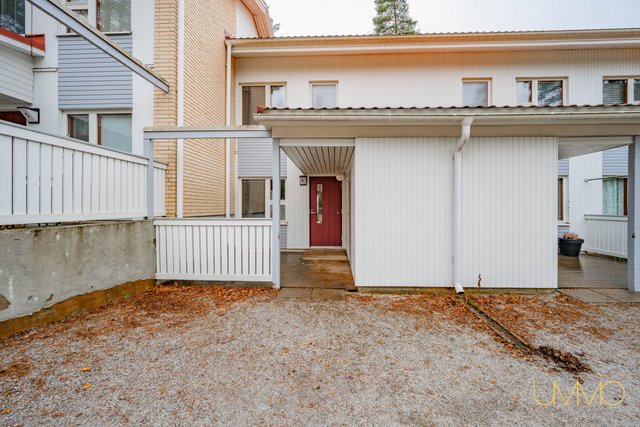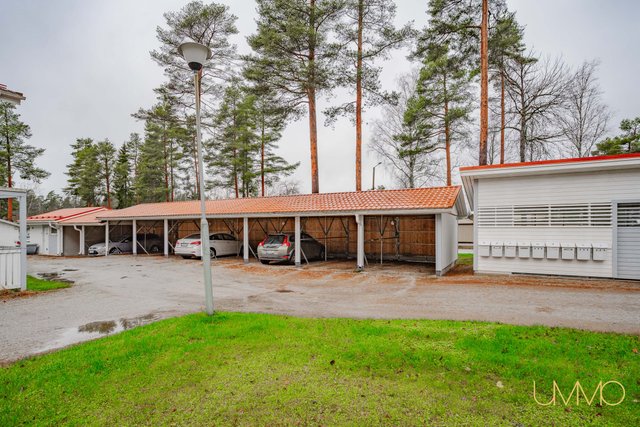 Huoneiston edessä on varasto sekä autolle löytyy katospaikka.