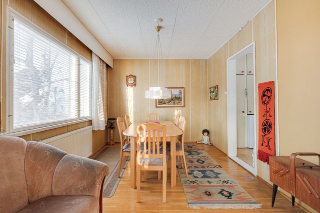 Leppätie 10:ssä sijaitsee viehättävä omakotitalo, joka tarjoaa tilaa ja mahdollisuuksia perheellesi. Tämä 1957 rakennettu talo on säilyttänyt aikakaudelleen tyypillisen kodikkaan tunnelman, ja sen 160 neliömetrin asuinpinta-ala levittäytyy kahteen kerrokseen.