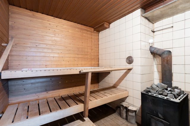Kellari tarjoaa lisätilaa, ja kellarissa sijaitsee lisäksi asunnon toinen pesuhuone ja sauna. Takkahuone ja baaritiski tekevät siitä erinomaisen paikan rentoutumiseen. Sauna puukiukaalla tarjoaa perinteistä suomalaista löylynautintoa.