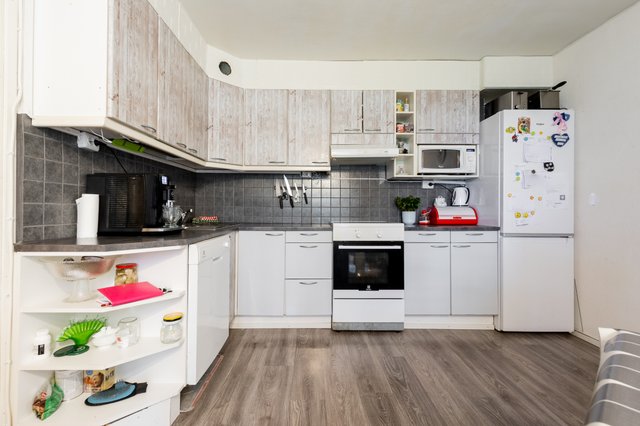 - Jääkaappipakastin, liesi, liesituuletin, ja astianpesukone