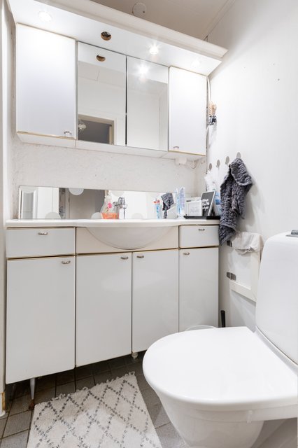 - WC-istuin, suihku, lattialämmitys, allaskaappi, ja peilikaappi