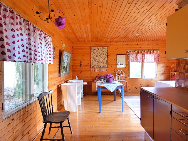 Talon olohuoneessa on varaava takka, joka tuo lämpöä ja tunnelmaa viileinä iltoina. Keittiö on varustettu puuhellalla, mikä lisää kodikkuutta ja mahdollistaa ruoanlaiton perinteikkäästi. Kylpyhuone ja sauna on remontoitu vuonna 2023, ja saunassa on mahdollisuus vaihtaa puukiukaaseen.