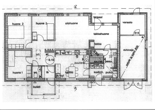 - Olohuoneessa varaava takka. Kulku takapihalle.