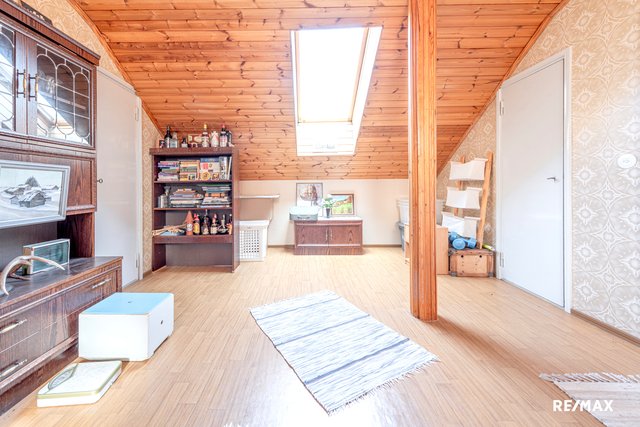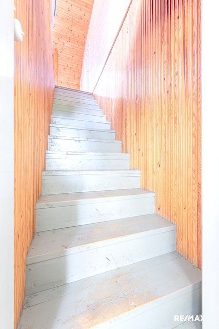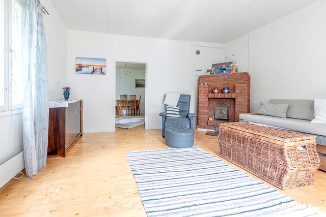 - Makuuhuoneet sijaitsevat yläkerrassa. Toisessa makuuhuoneessa iso valurautatakka. Yläkerrassa myös oleskelutila ja runsaasti komeroita.