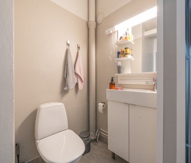 - Yläkerran wc kylpyhuoneen yhteydessä, keskikerroksen wc erillinen, tässä tilassa on aikanaan ollut suihku myös (remontin yhteydessä helppo toteuttaa kun tilassa on lattiakaivo)