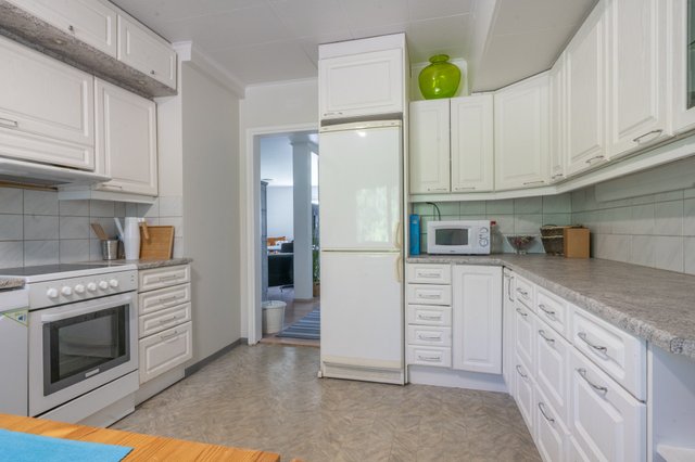 - Jääkaappipakastin, astianpesukone, ja liesi