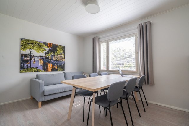 Tämä vuonna 1961 rakennettu omakotitalo tarjoaa runsaasti tilaa, toimivat pohjaratkaisut ja monia mahdollisuuksia niin perheelle, yrittäjälle kuin sijoittajallekin. Talo sijaitsee rauhallisella mutta keskeisellä paikalla, omalla 1858 m² tontilla, vain noin 100 metrin päässä Citymarketista. Suojaisa ja yksityinen piha-alue tarjoaa reilusti tilaa oleskeluun ja esimerkiksi uuden autotallin tai pihasaunan rakentamiseen – rakennusoikeutta on jäljellä runsaasti (e=0,4).