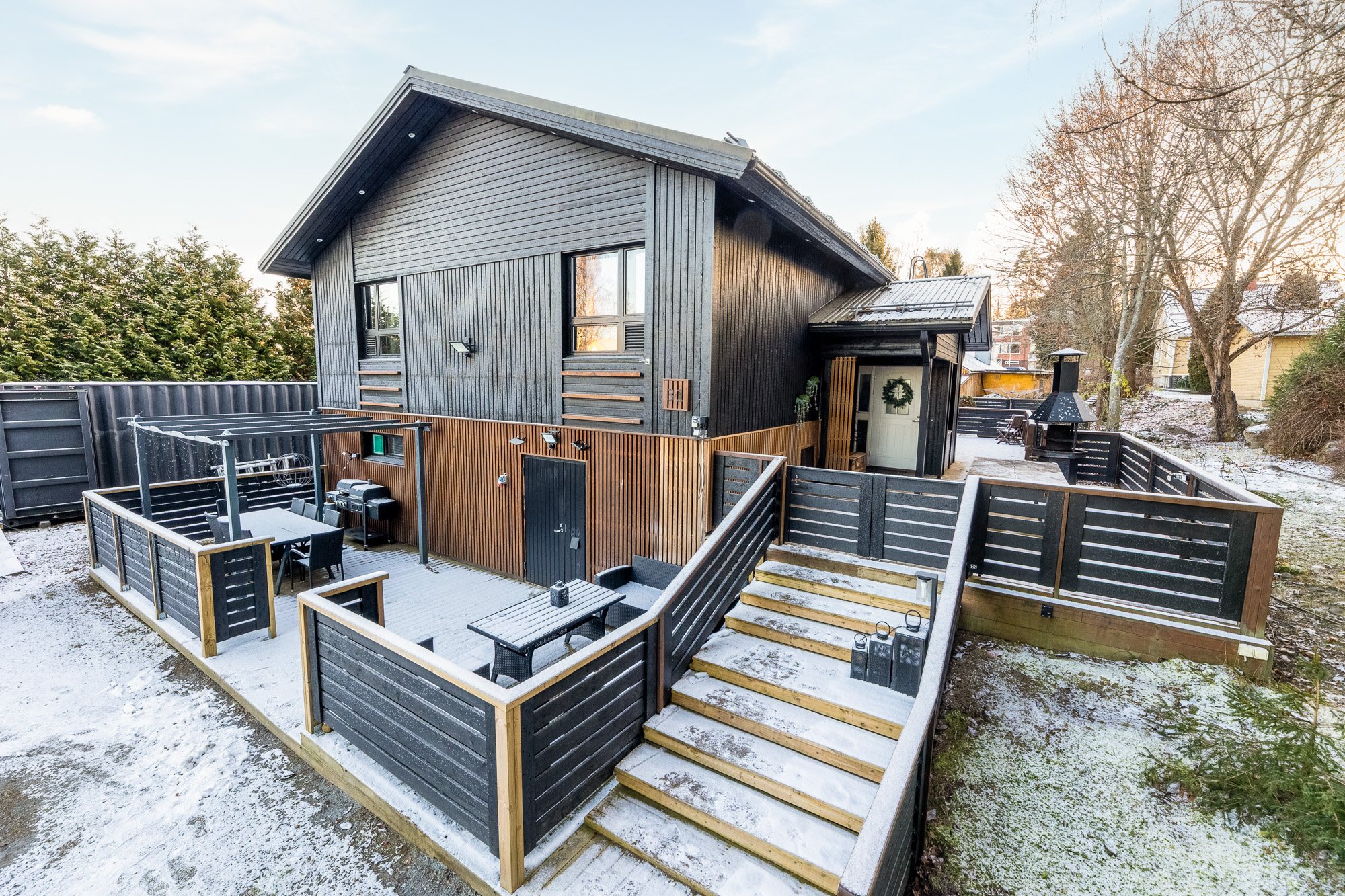 - Suojaisa terassiosuus aidattu ja turvallinen esimerkiksi lapsille ja lemmikeille.