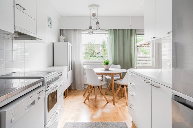 - Jääkaappipakastin, liesi, liesituuletin, ja astianpesukone