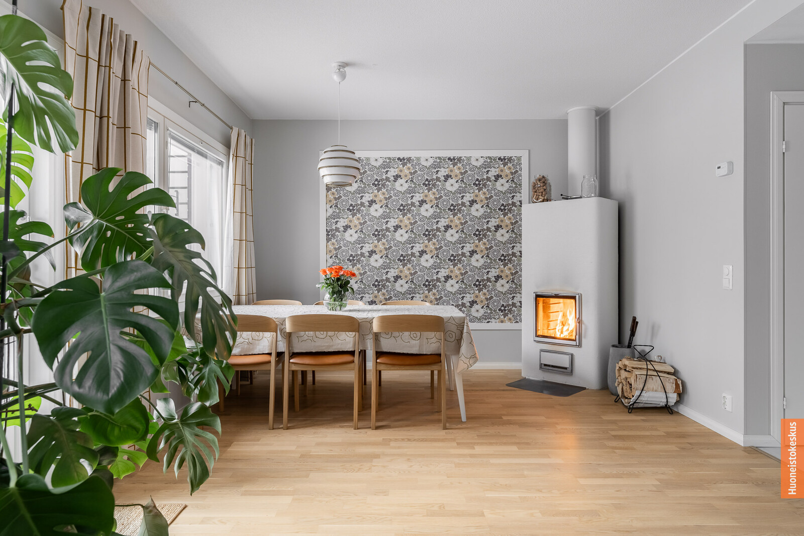 - Olohuoneen lattia uusittu vuonna 2024 (Tarkett Nature tammi white 3 s). Olohuoneessa Tulikiven varaava takka (nuohottu 11/2024).