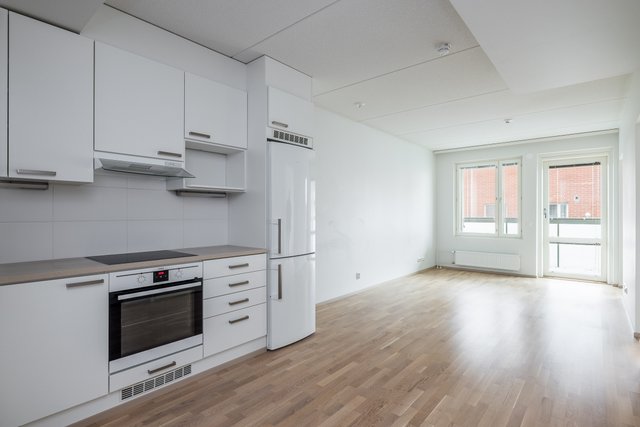 Asunnon pohjaratkaisu on toimiva ja valoisa. Keittiössä on laadukkaat kodinkoneet, ja avara olohuone yhdistyy saumattomasti ruokailutilaan. Makuuhuoneessa on mukavasti säilytystilaa, ja kylpyhuone on varustettu nykyaikaisilla mukavuuksilla.