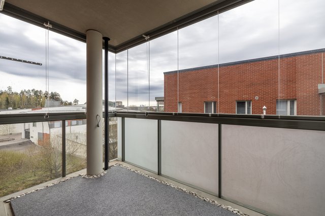 - Parveke: tilava lasitettu parveke, joka toimii lisähuoneena keväästä syksyyn.