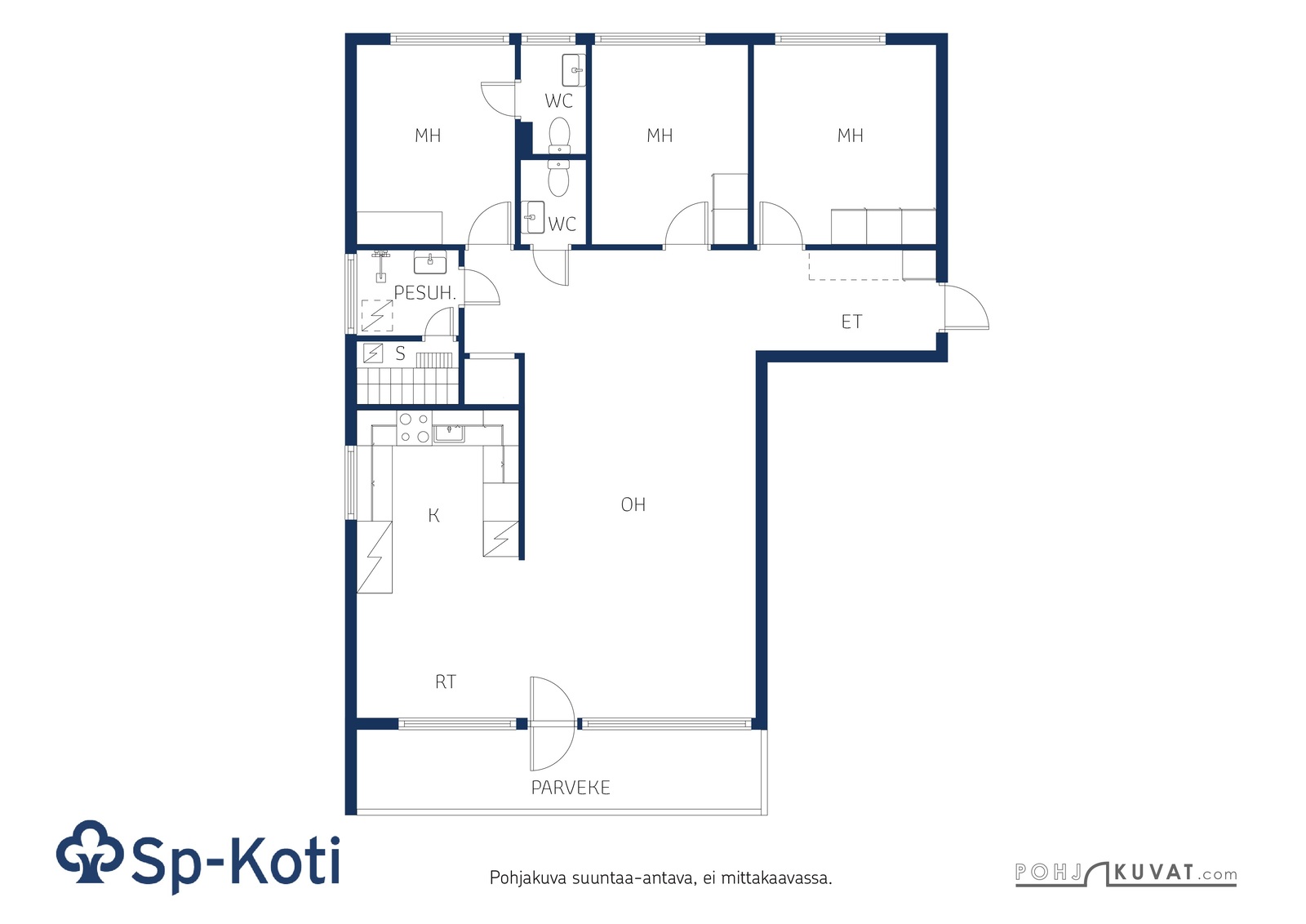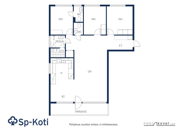 - Ei tarkistusmitattu. Pinta-alat saattavat tämän ikäisissä kohteissa (yhtiö rekisteröity ennen 01.01.1992) poiketa olennaisestikin asuinrakennusten nykyisten mittaustapojen ja standardien (SFS 5139) mukaan laskettavasta asuintilojen pinta-alasta. Pinta-ala voi siis olla edellä mainittua pienempi tai suurempi.