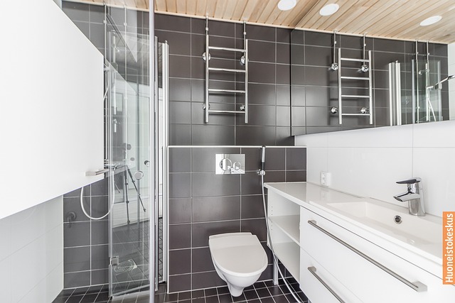 - Allaskaappi, wc-istuin, pesukoneliitäntä, suihkuseinä, peili, lattialämmitys, suihku, ja kiinteät valaisimet