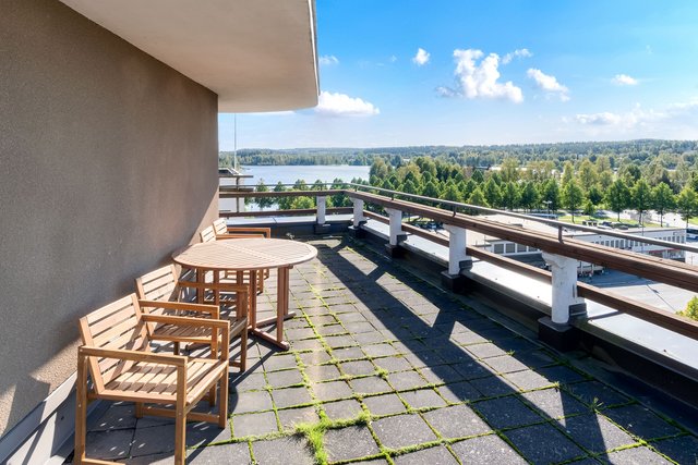 Yhtiössä on viihtyisä saunaosasto sekä iso kattoterassi, josta näkymät Vanajavedelle.