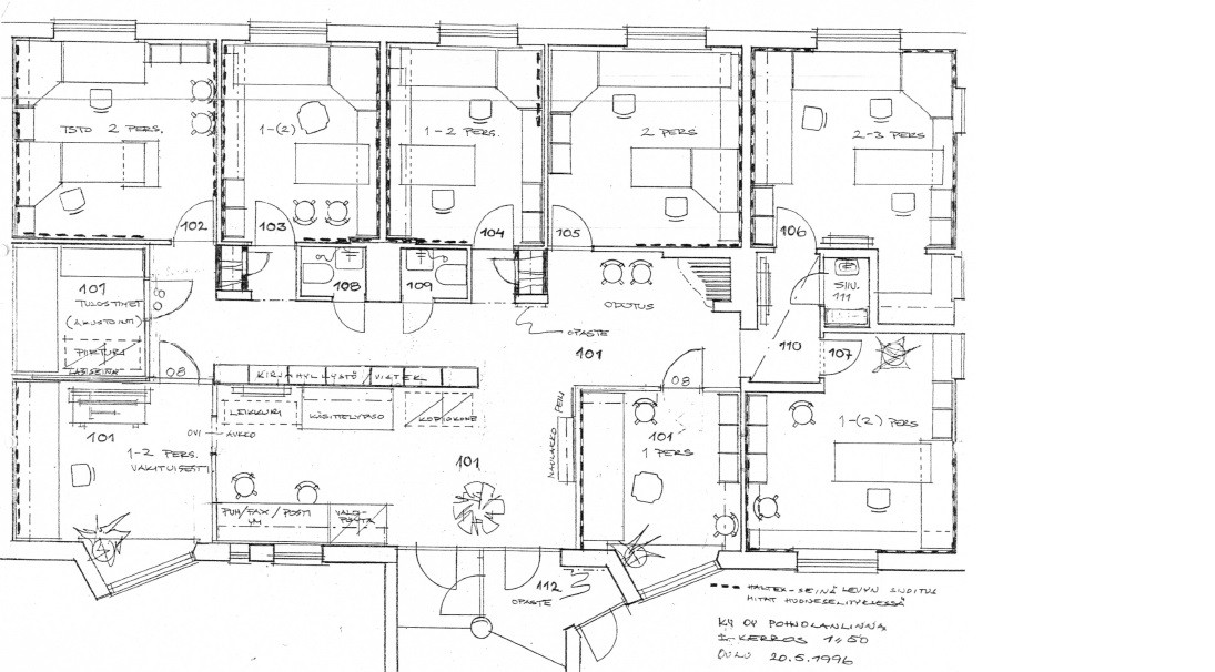 - Valmistumisvuosi 1952. Porrashuone ja toinen kerros rakennettu 1991. Pohjakerros peruskorjattu 1996
