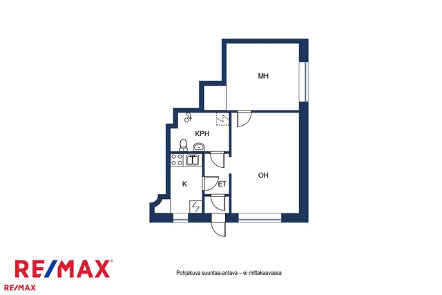 Asunnossa on kaksi tilavaa huonetta, ja molemmissa on isot ikkunat pihanäkymin. Makuuhuoneessa on käytännöllinen vaatehuone. Keittokomerossa on ikkuna ja kiinteä säilytyskaappi. Kylpyhuone on suuri ja siellä on paikka pyykinpesukoneelle.