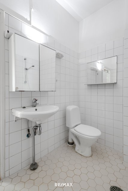 - WC-istuin, peilikaappi, suihku, ja pesukoneliitäntä