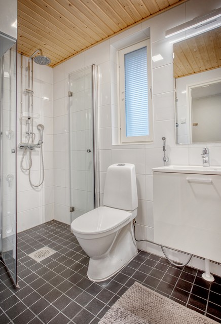 - Iso ikkunallinen kylpyhuone jossa tilaa pyykinpesukoneelle. Kylpyhuoneessa sähkötoiminen lattialämmitys.