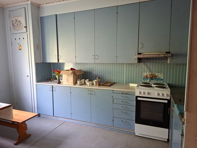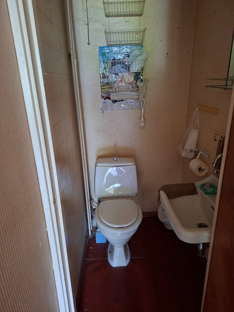 Kohteessa on kolme wc:tä, sauna sähkökiukaalla sekä suihku. Yläkerran keittiössä on ollut putkivuoto, mikä on otettava huomioon suunnitelmia tehdessä. Tämä on kuitenkin oiva mahdollisuus remontoida ja päivittää talo juuri omien tarpeidesi mukaiseksi.