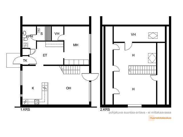 - kolmemakuuhuonetta, joista kaksi ylhäällä.