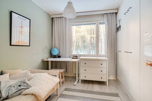 - Kaikissa makuuhuoneissa on kiinteät vaatekaapit. Seinämateriaalit: Maali. Lattiamateriaalit: Laminaatti.