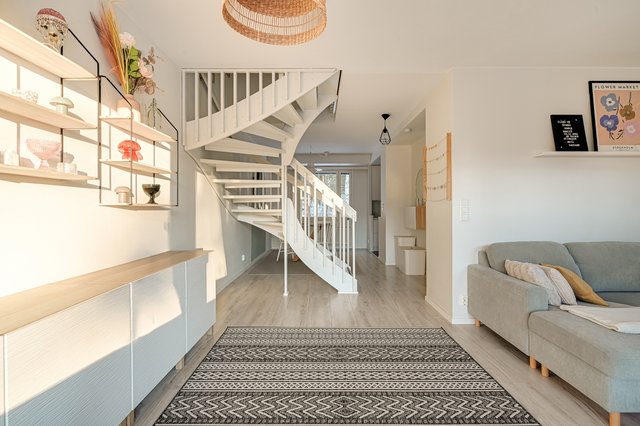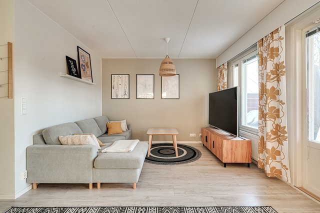 Viihtyisä, vaalein sävyin remontoitu paritalokoti 19: n asunnon taloyhtiössä, lapsiperheiden suosimalla alueella.