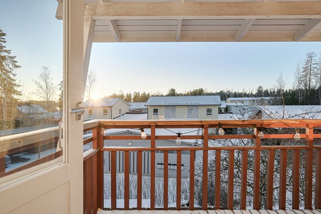 Takapiha ja parveke avautuvat etelän ja lännen suuntaan, eli auringosta nautitaan iltaan asti.
