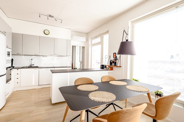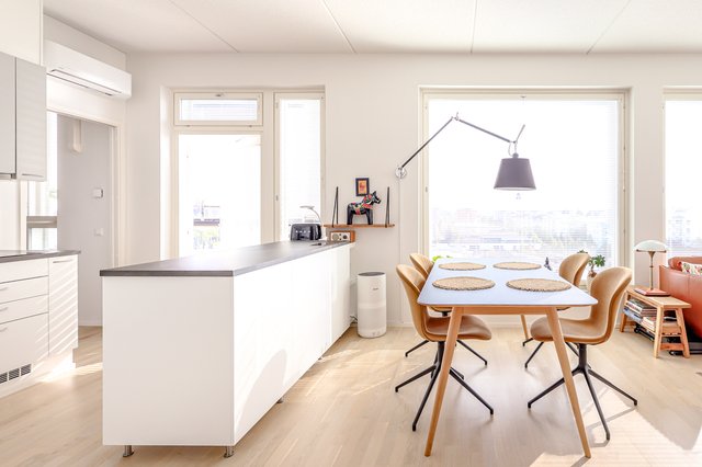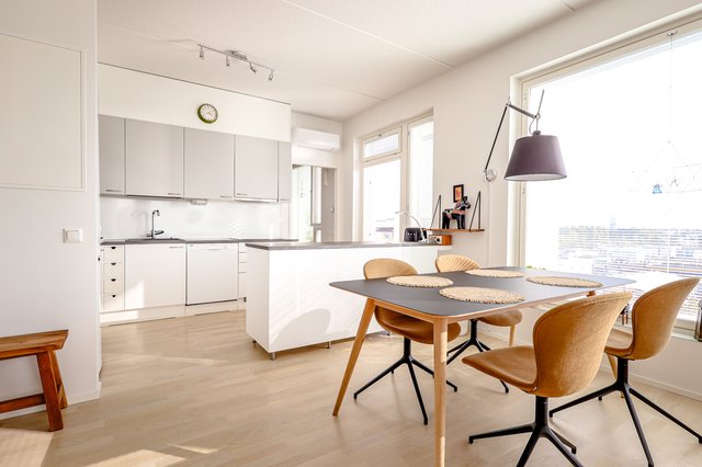 Tämä kuudennen kerroksen kolmio (3h+k) aivan Keravan ytimessä yhdistää vaivattoman asumisen, valoisuuden ja modernit ratkaisut.