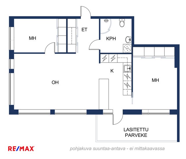 - Isännöitsijäntodistuksen mukainen, Yhtiöjärjestyksen mukainen, (Pinta-ala ei ole tarkistusmitattu ja todellinen pinta-ala voi olla suurempi tai pienempi, kuin ilmoitettu)