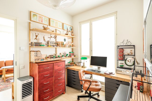 Etelään suuntautuva lasitettu parveke toimii lisähuoneena pitkälle syksyyn, ja uusi ilmalämpöpumppu huolehtii miellyttävästä viilennyksestä kesäisin. Kaksi makuuhuonetta, reilut säilytystilat ja tyylikäs kylpyhuone lattialämmityksellä tekevät arjesta mukavaa. Hissi, esteetön kulku ja hyvin hoidettu taloyhtiö lisäävät asumisen helppoutta entisestään.