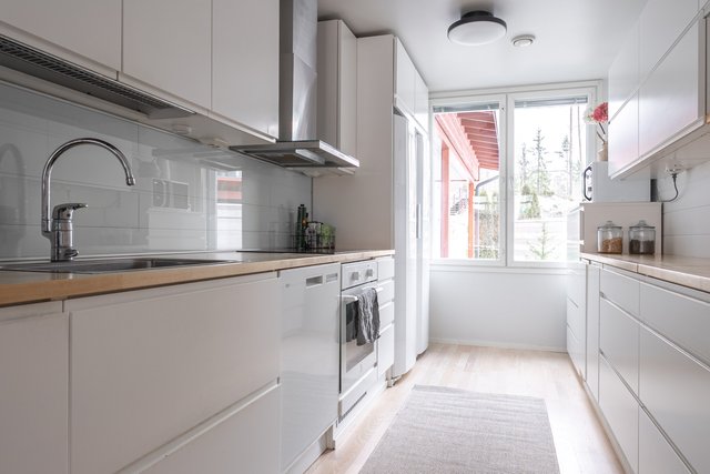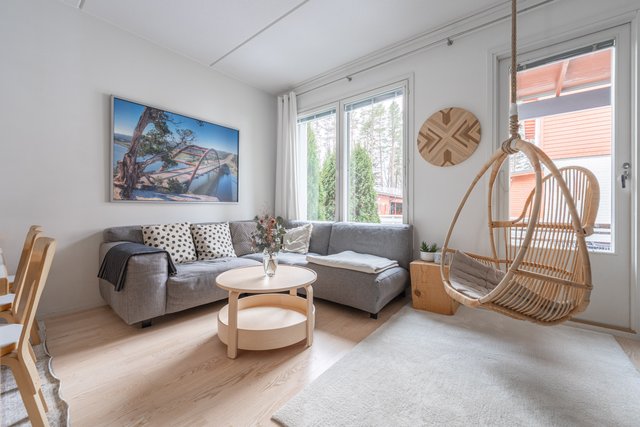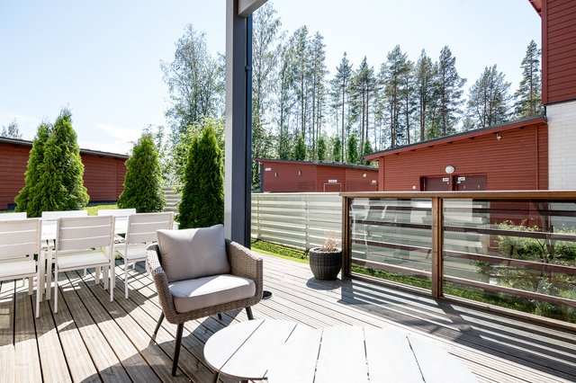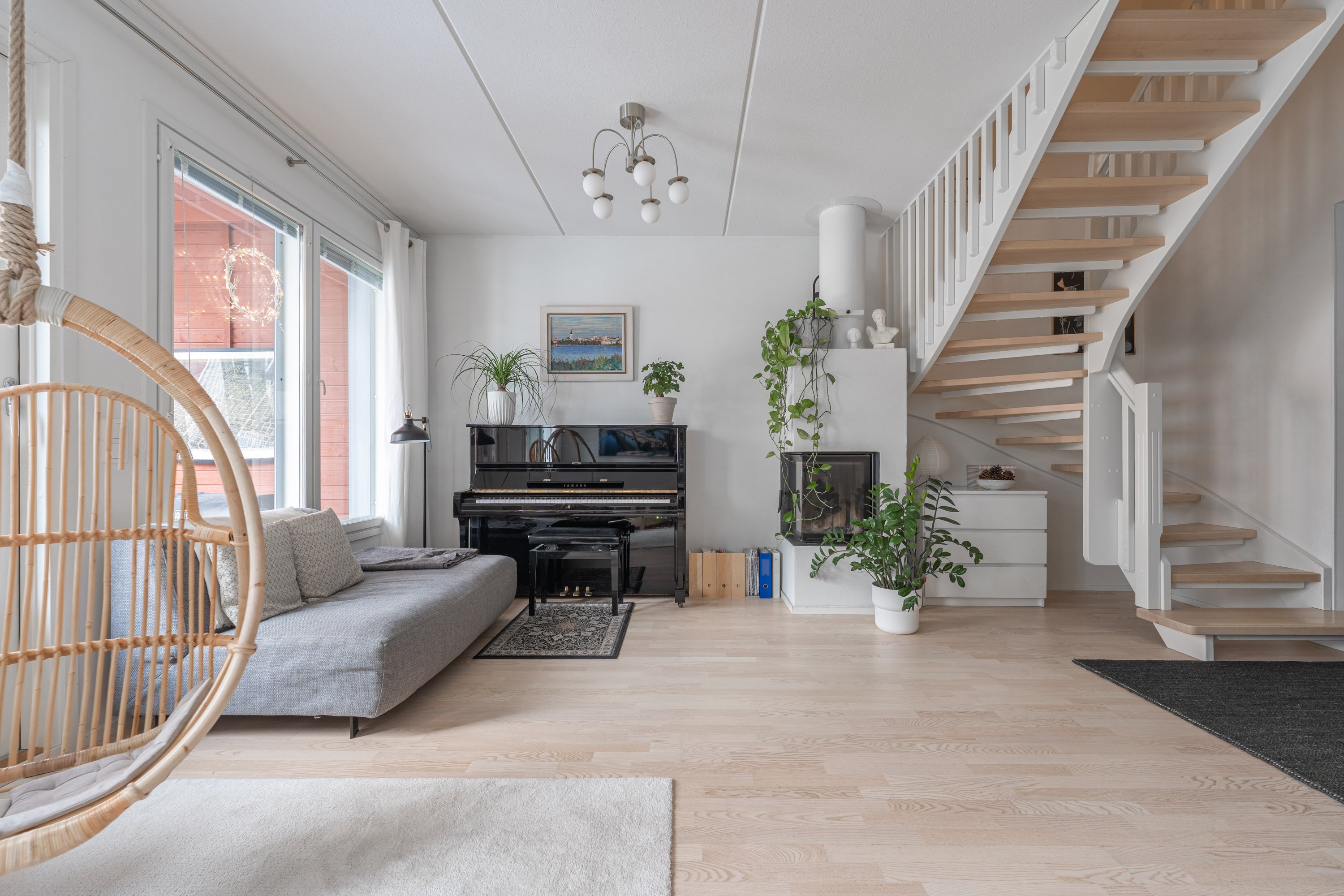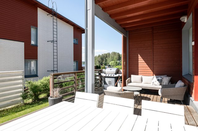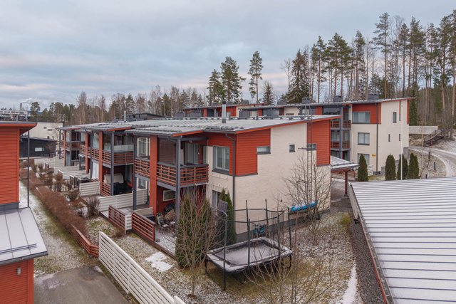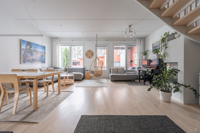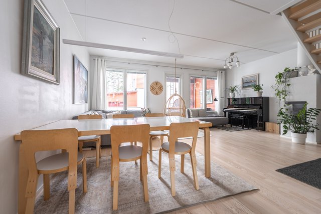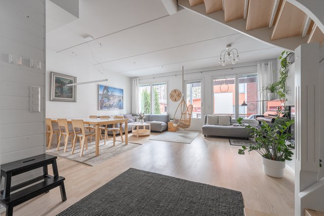 rivitalopääty kaikilla herkuilla lähellä tärkeitä palveluita. Tästä kodista löytyy kaikki ihanuudet aina takasta viilentävään ilmanlämpöpumppuun ja lasitetusta parvekkeesta suureen piha-alueeseen. Oman tontin vuoksi täällä viihtyisässä turvallisessa pihapiirissä asut edullisesti.