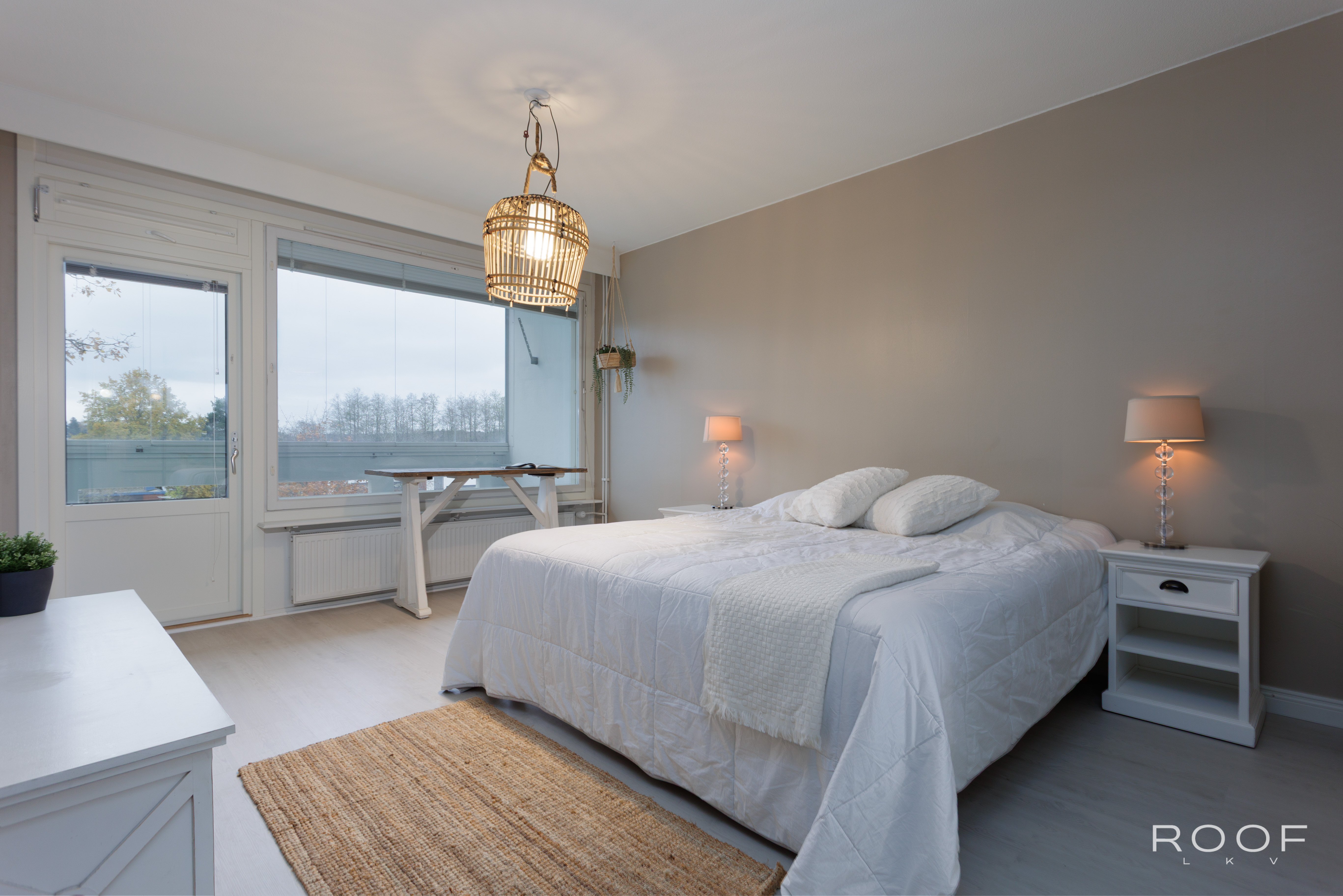 - Tilava olohuoneen ja makuutilan yhdistelmä, jonka yhteydessä on peililiukuovikaapisto. Käynti lasitetulle parvekkeelle, josta on upeat näkymät. Lattia vinyyliä ja seinät maalattu.