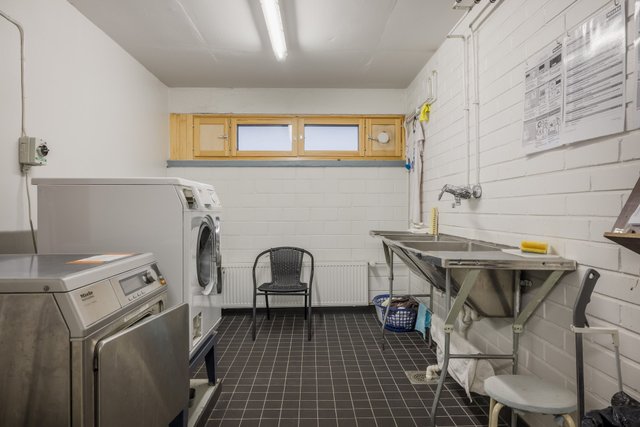 - Kellarikomero, kuivaushuone, pesutupa, pyörävarasto, väestönsuoja, kerhohuone, mankeli, ja kaapeli-tv
