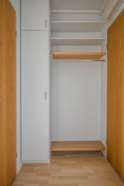 - Eteisessä kaapistot ja naulakko, maalatut seinät ja laminaattilattia.