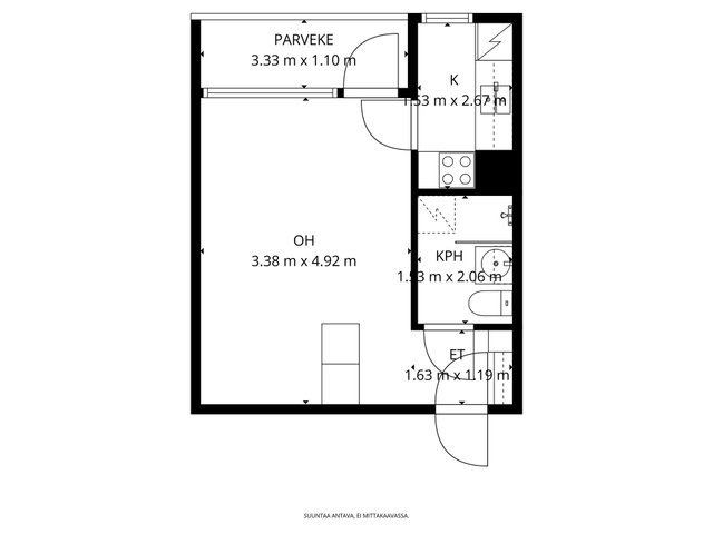 - Yhtiöjärjestyksen mukainen, Isännöitsijäntodistuksen mukainen, (Pinta-ala ei ole tarkistusmitattu ja todellinen pinta-ala voi olla suurempi tai pienempi, kuin ilmoitettu)