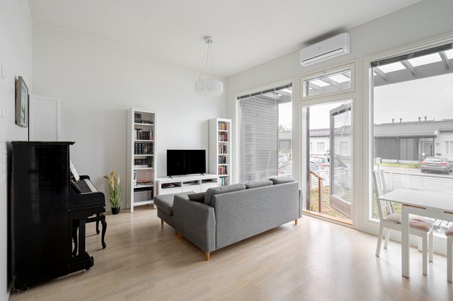 Tervetuloa tutustumaan tähän viihtyisään ja toimivapohjaiseen rivitalokaksioon Kivistön rauhallisella alueella. Kodin tilava ja selkeä pohjaratkaisu tekee arjesta sujuvaa, ja siistit pinnat antavat mahdollisuuden muokata sisustusta omaan makuun sopivaksi. Olohuoneen ja keittiön avara yhteys luo kodikkaan tunnelman, ja suuret ikkunat tuovat runsaasti luonnonvaloa.
