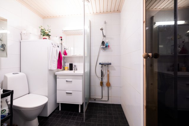 - Pesuhuone reilun kokoinen. Lämminvesivaraaja pesuhuoneessa. Pesuhuone remontoitu kalusteineen v. 2017.