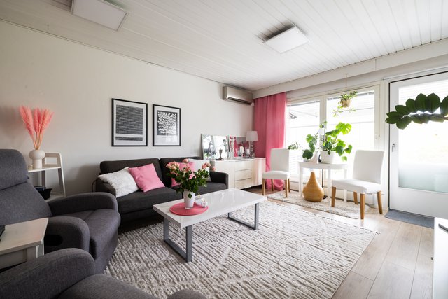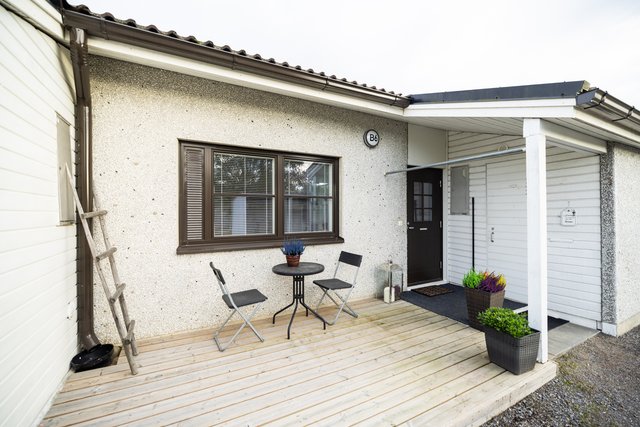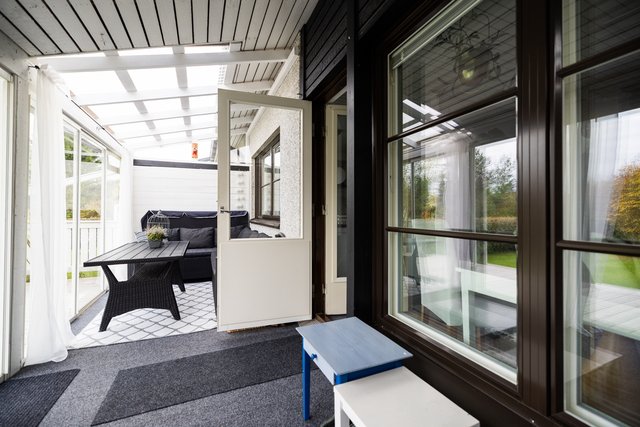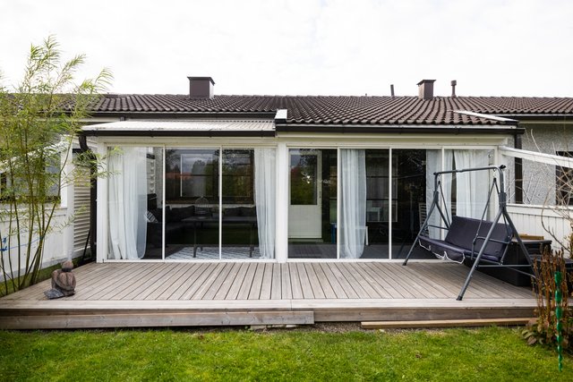 - Olohuoneesta käynti takapihan tilavalle lasitetulle terassille, missä pääset nauttimaan aamukahvista auringon paistaessa itäsuunnalta.