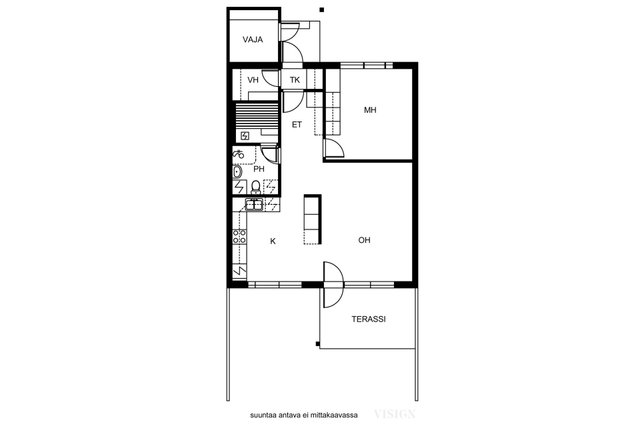 - Kylmä ulkovarasto asunnon sisäänkäynnin yhteydessä. Taloyhtiön yhteinen vaja missä voi säilyttää esim. ruohonleikkuria