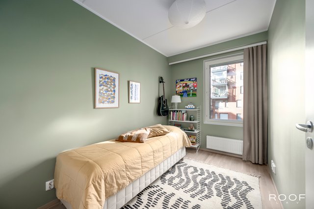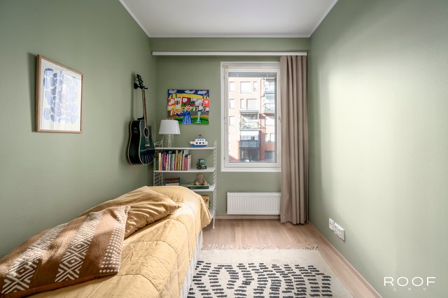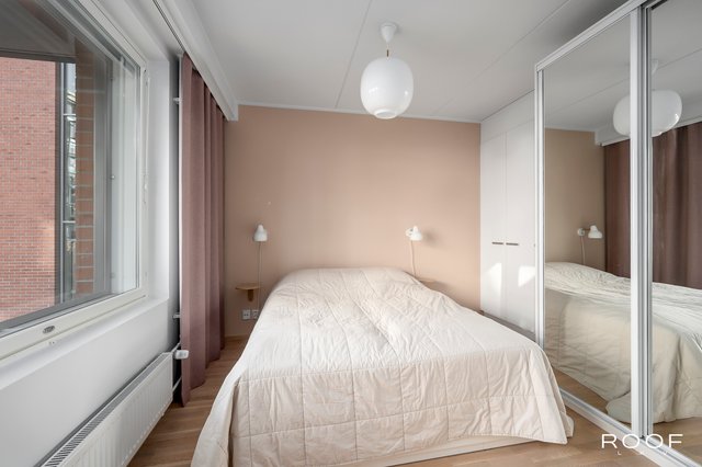 Asunnossa on kaksi makuuhuonetta - toisen yhteydessä on runsaasti kaappitilaa, ja toinen toimii mainiosti esimerkiksi lastenhuoneena, työtilana tai lisämakuuhuoneena. Molemmissa huoneissa on säilytystilaa. Tilava ja vaaleasävyinen kylpyhuone on nykyaikainen, ja oman saunan lempeät löylyt viimeistelevät päivän. Kodinhoidolle on oma käytännöllinen paikkansa pesutornivarauksineen.